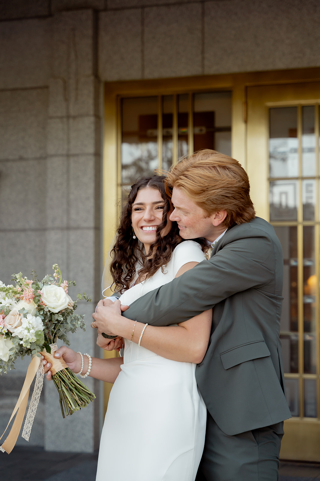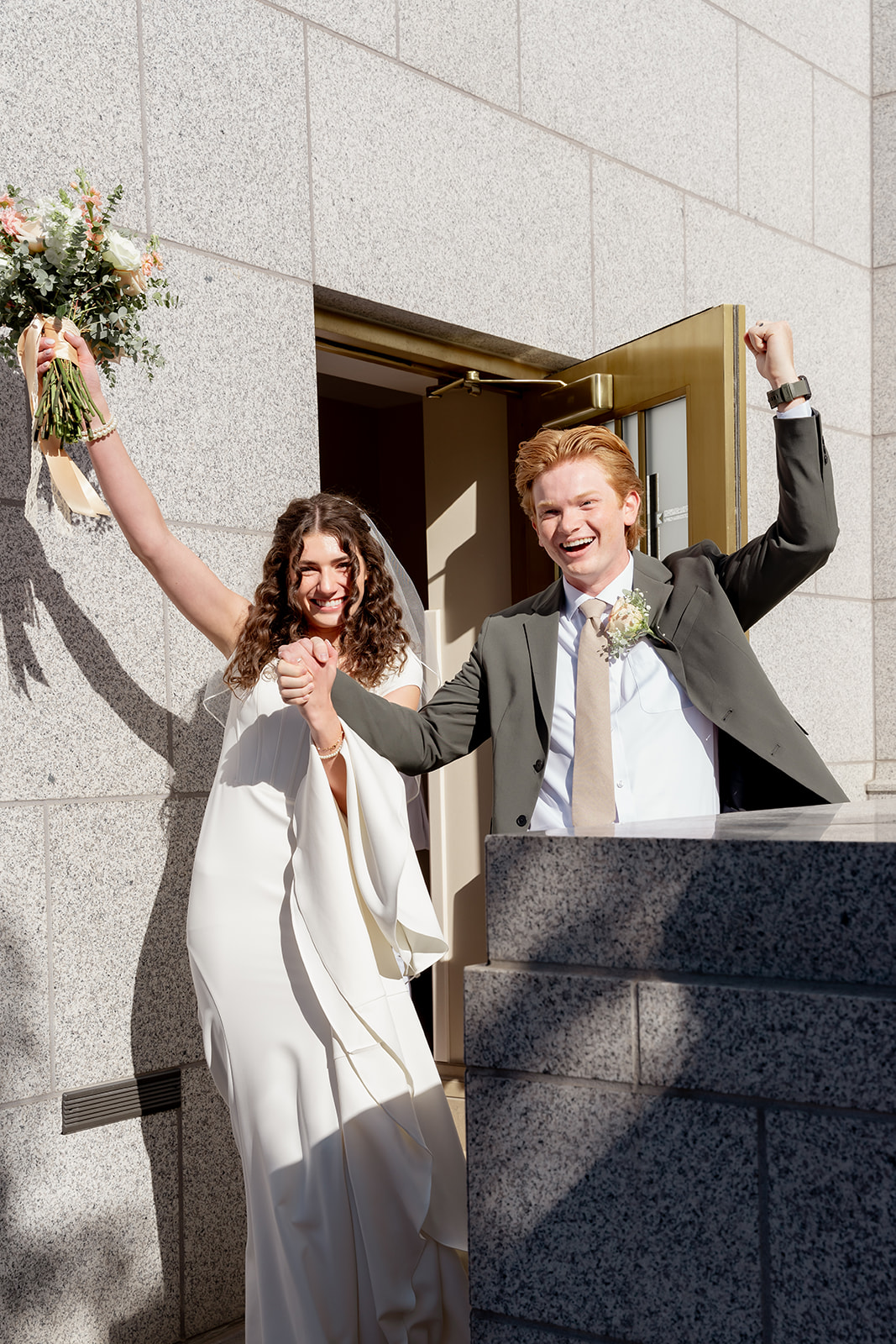The Draper Utah Temple glowed beneath a warm, sunlit sky as Kate and Drew stepped out hand in hand — surrounded by a truly enormous circle of loved ones. Their families wrapped around them like a soft embrace, filling the temple grounds with laughter, cheers, and the kind of energy that feels both celebratory and deeply rooted.