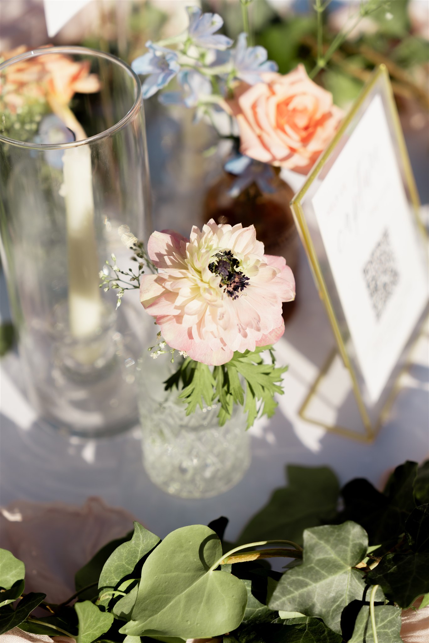 • simple floral arrangements echoing the wedding colors