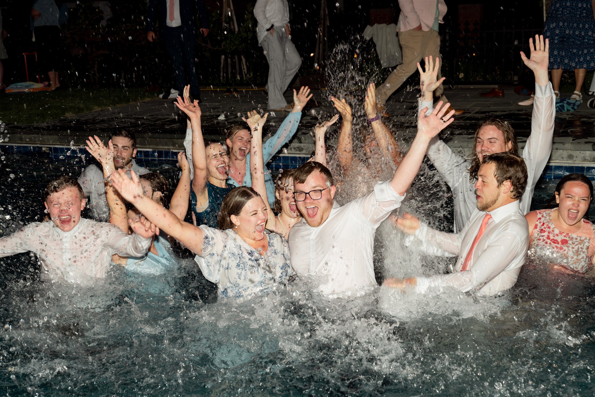 Surrounded by their friends and bridal party, they all jumped into the pool together — still dressed from the celebration. It was spontaneous, joyful, and completely fitting for the fun energy of the evening. Moments like that perfectly capture what a wedding day is truly about: celebration, connection, and memories that will last a lifetime.