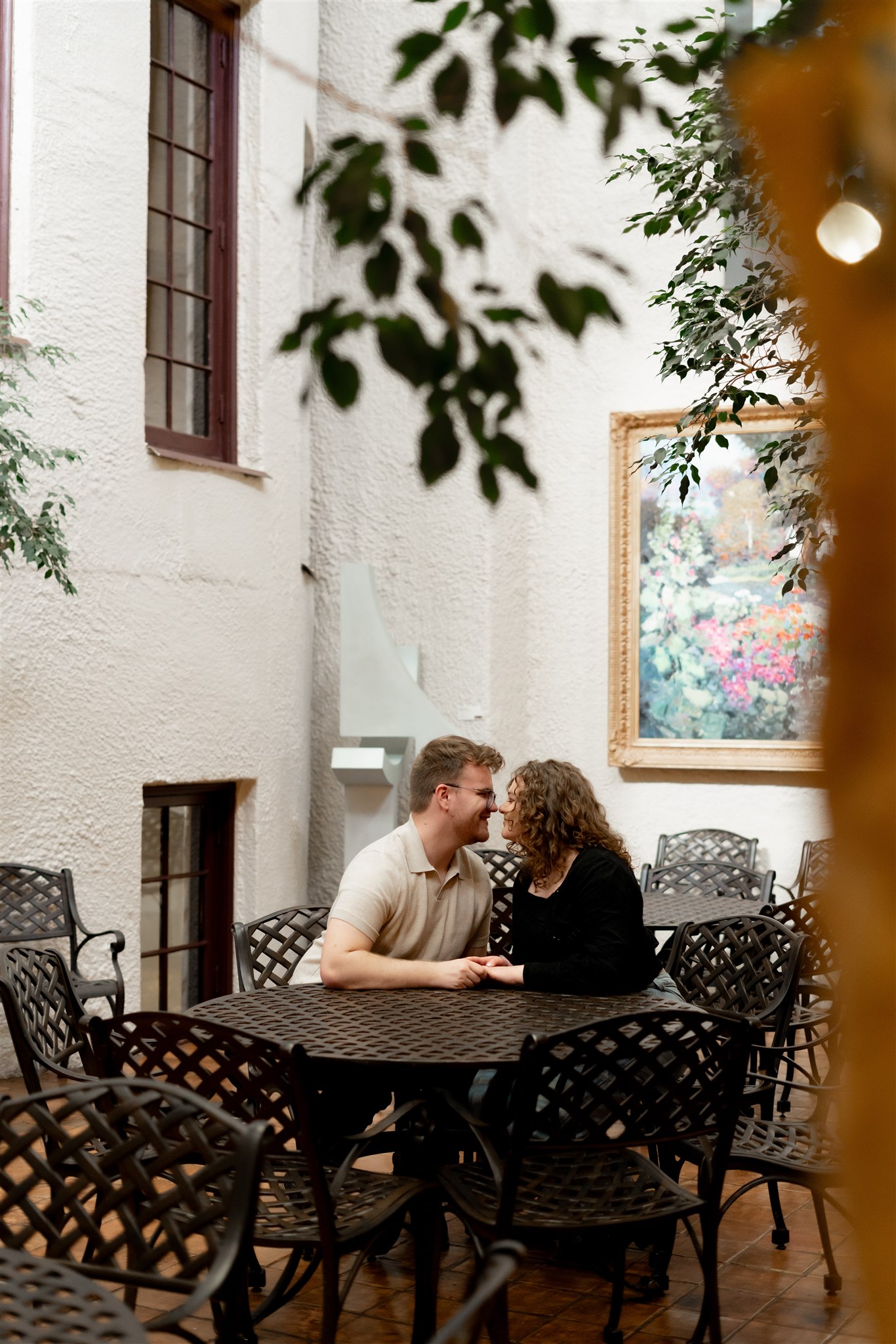 The elegant setting paired perfectly with their understated chemistry, giving their engagement photos a refined and timeless feel.