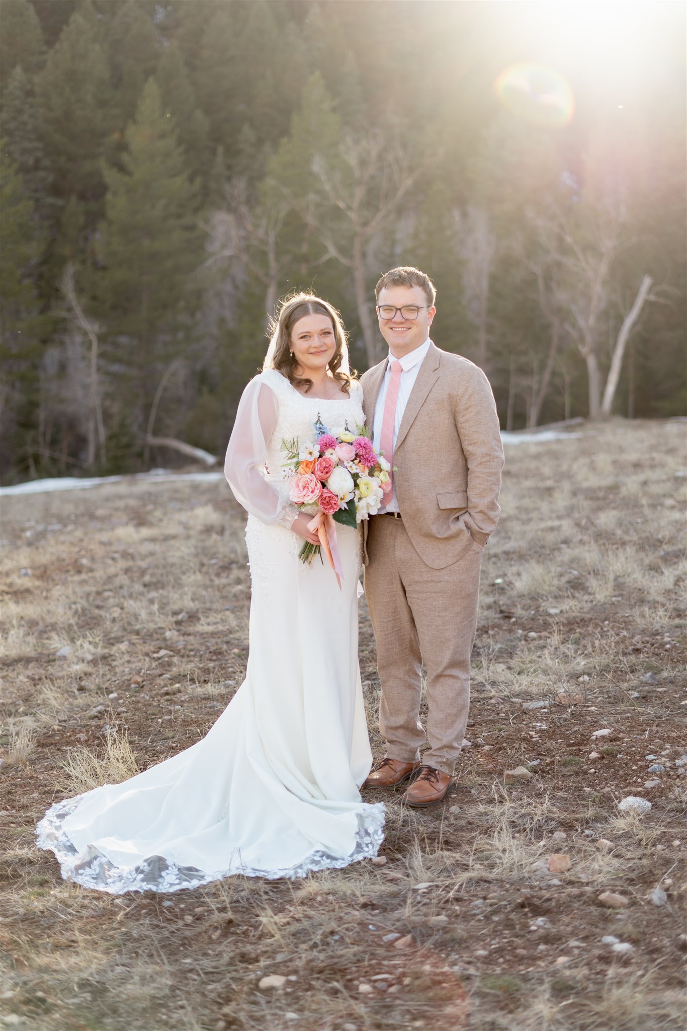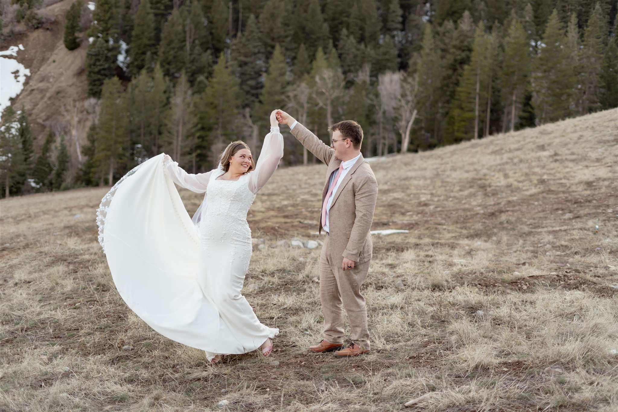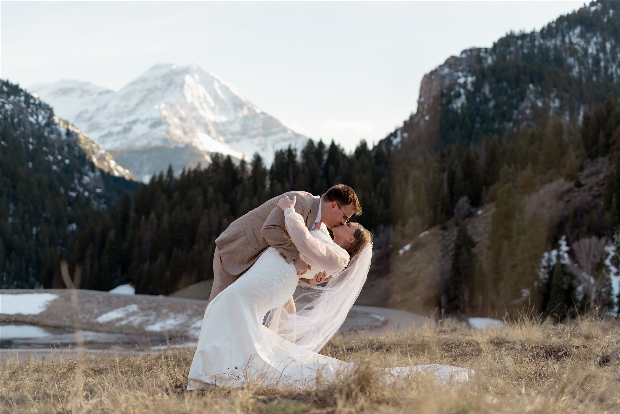 Their bridals took place at Tibble Fork Reservoir, surrounded by towering mountains and pine trees. Just as we arrived, the sun came out from behind the clouds and lit the entire valley with the most beautiful glow — the kind of light photographers quietly hope for all day.
